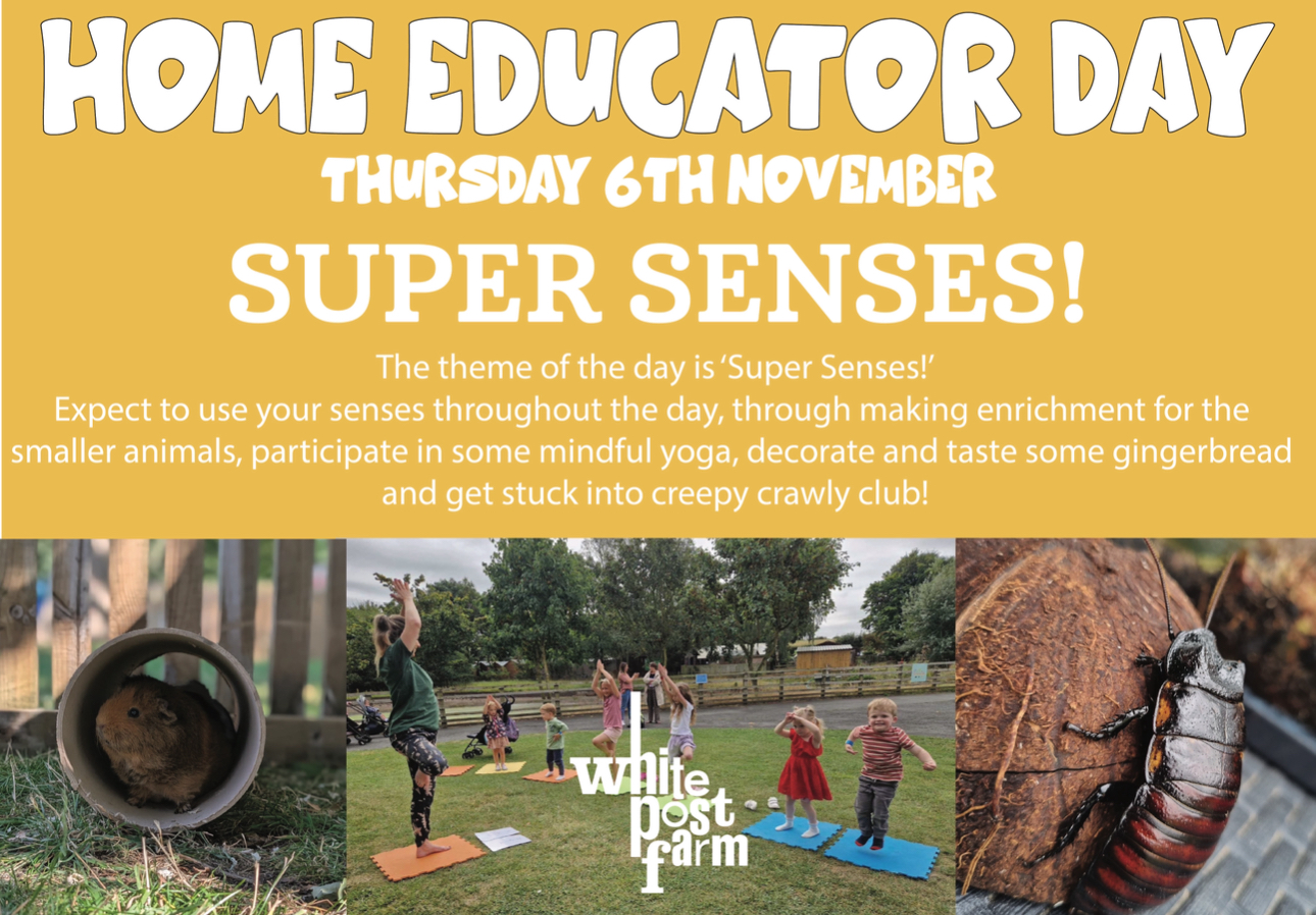 HOME EDUCATOR DAY: SUPER SENSES! Thursday 6th November Our next Home Educator Day will take place on Thursday, 6th November. Join us for a day of free-range fun, where you will be able to join in with all our usual farm activities, as well as…