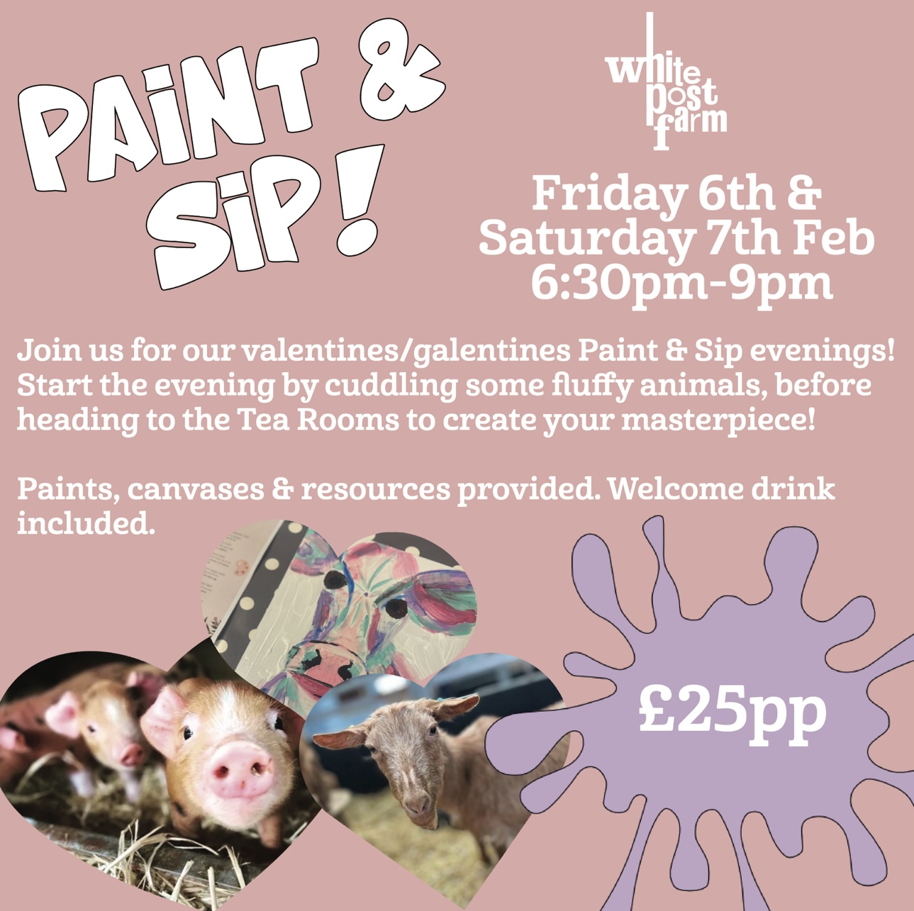 Valentine's Paint & Sip Friday 6th February & Saturday 7th February 6:30 pm-9 pm Our most popular evening is back! Join us for a Valentine's/Galentine's Paint & Sip evening, where you can paint your own canvas using farm inspiration. Start your evening by meeting and…
